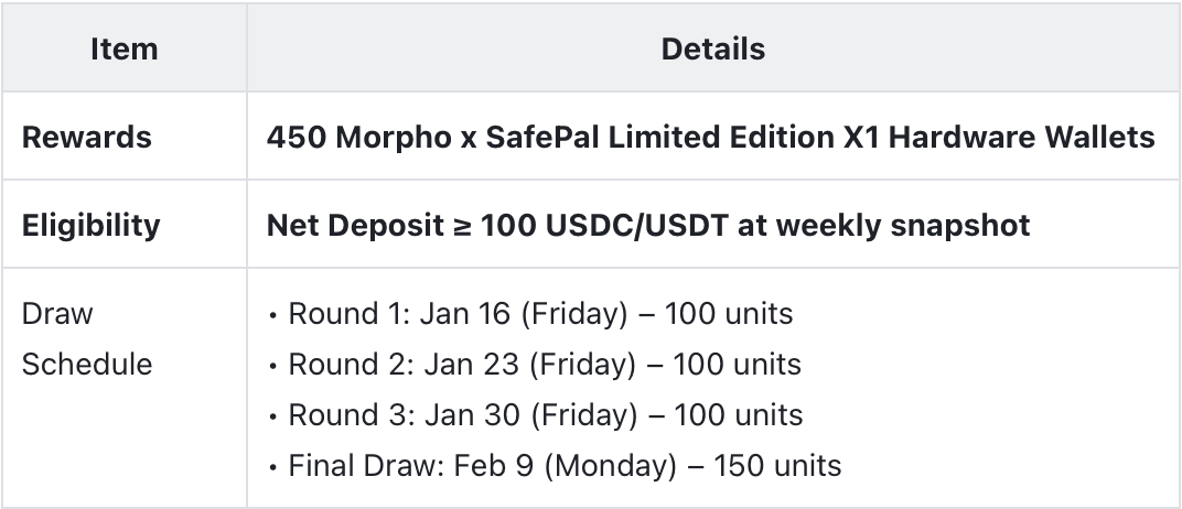 Holders of the Morpho x SafePal Limited Edition X1 Hardware Wallet may receive exclusive perks in future campaigns, such as boosted APY for depositing. Stay tuned for more updates!