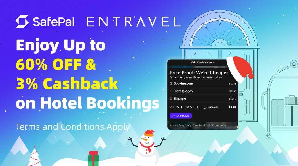 - SafePal x Entravel Partnership: Nikmati diskon hingga 60% dan Cashback 3% untuk pemesanan hotel dengan SafePal Mastercard dan $SFP