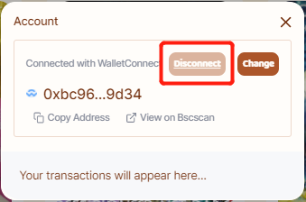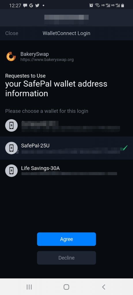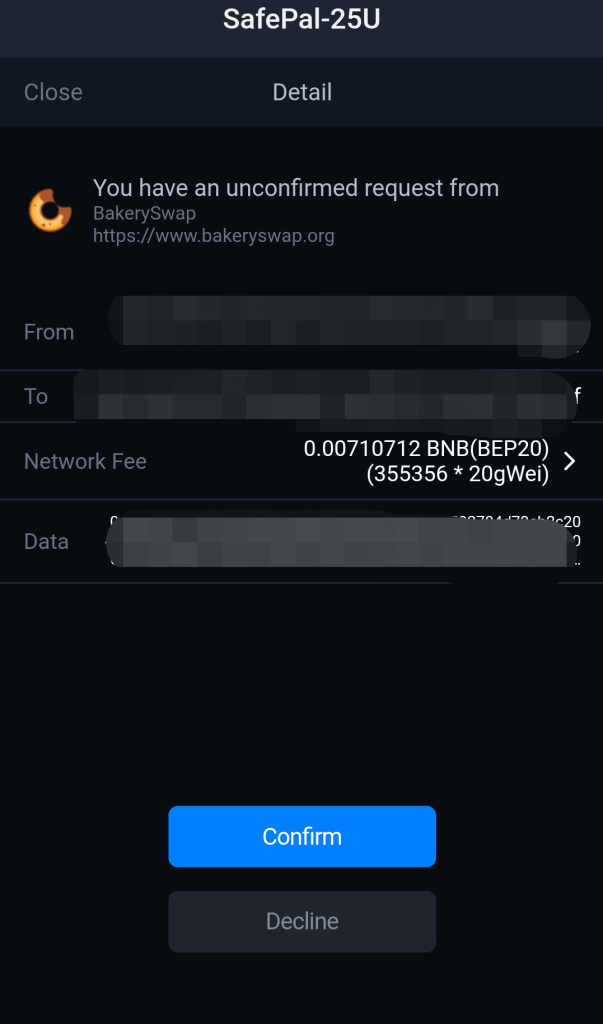 If you do not see the above message in your SafePal App, simply visit the BakerySwap Website and disconnect your Wallet, and re-scan the QR code again using your SafePal App.