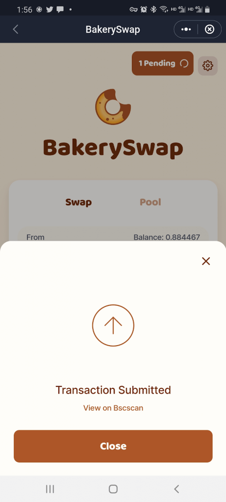 After you confirm the above transaction and enter your security password within the SafePal App. The NFT will have been minted and sent in for review by the BakerySwap Team.