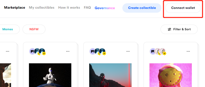 Go to the Rarible Website and select Connect Wallet