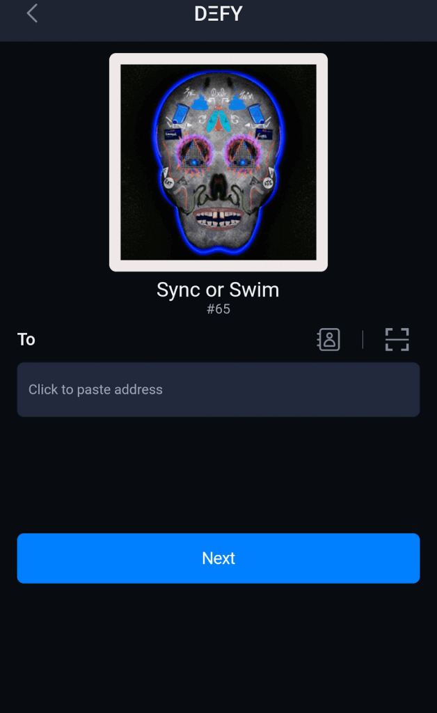 Select the NFT that you wish to send and in our current collection we have 2 donated NFTs from DΞCΞNTRALIZΞ Twitter & Daniella Attfield Twitter shown below