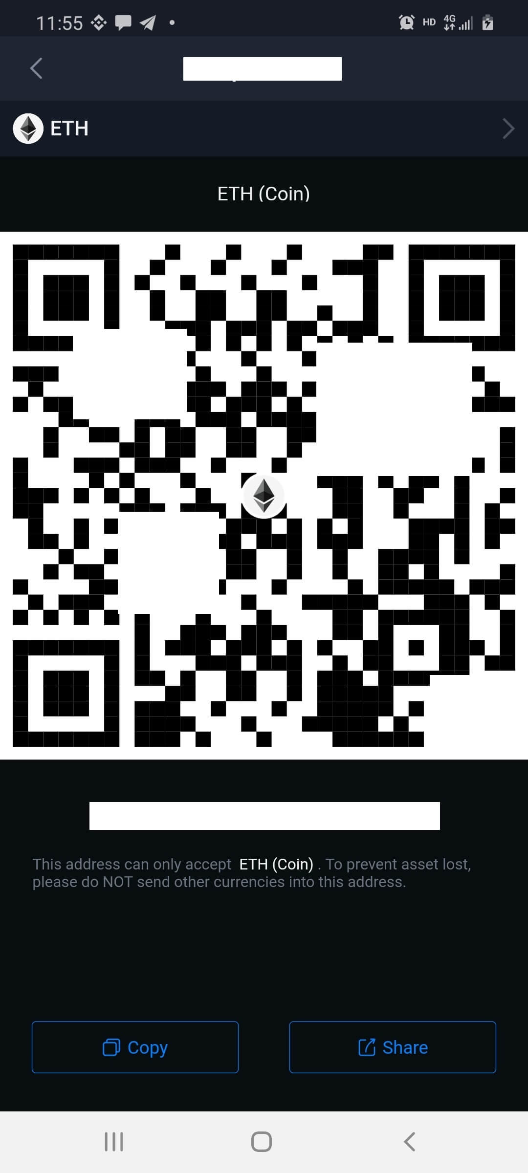 Next users must select Receive to send ETH into their Software Wallet, this will lead users into the ETH Receive page. Users can now send their ETH to the provide Software Wallet address.